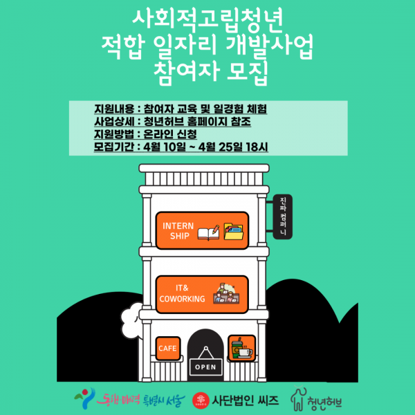 [공릉동] 사회적고립청년 적합 일자리 개발사업 참여자 모집 - 서울특별시 지원사업