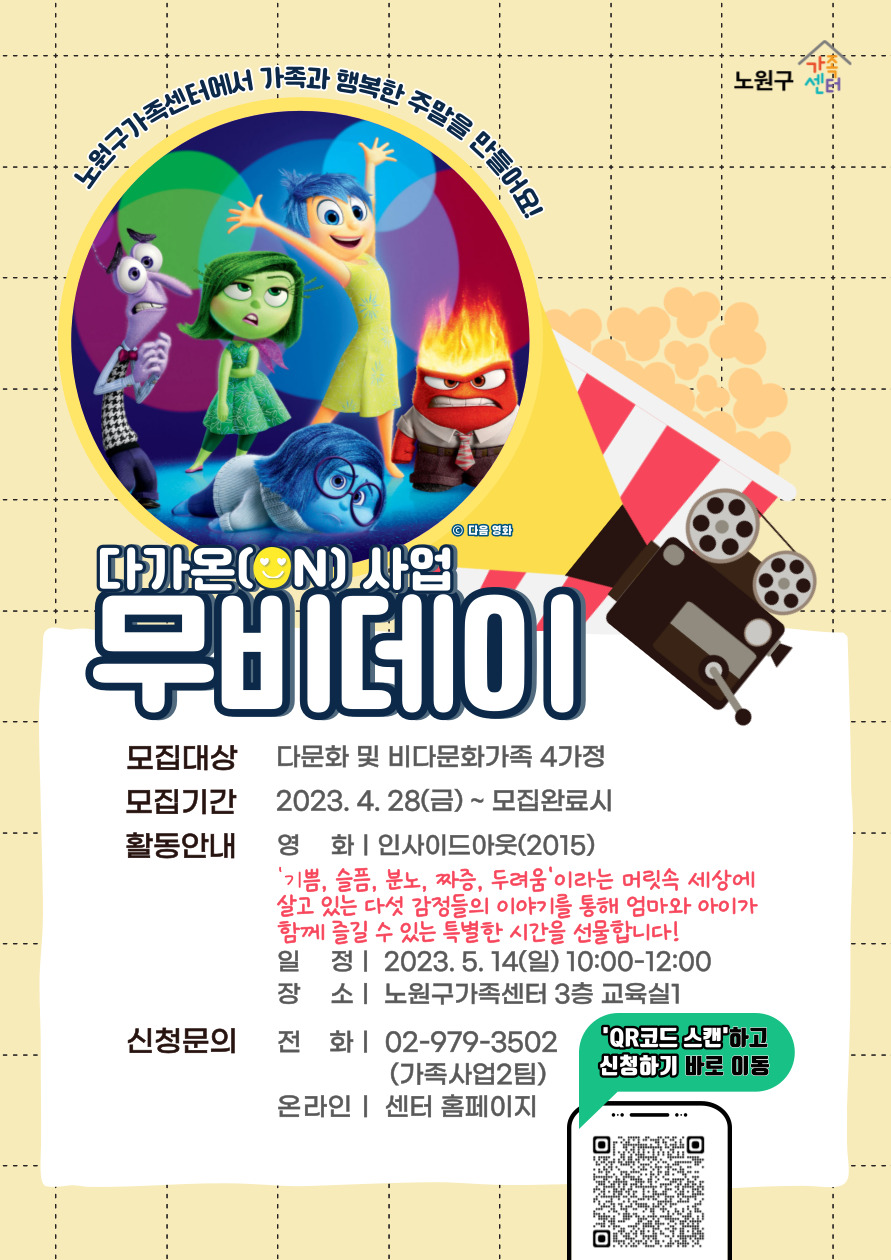 [노원구가족센터] 다가온(ON) 사업 무비데이 안내(영화 인사이드아웃)