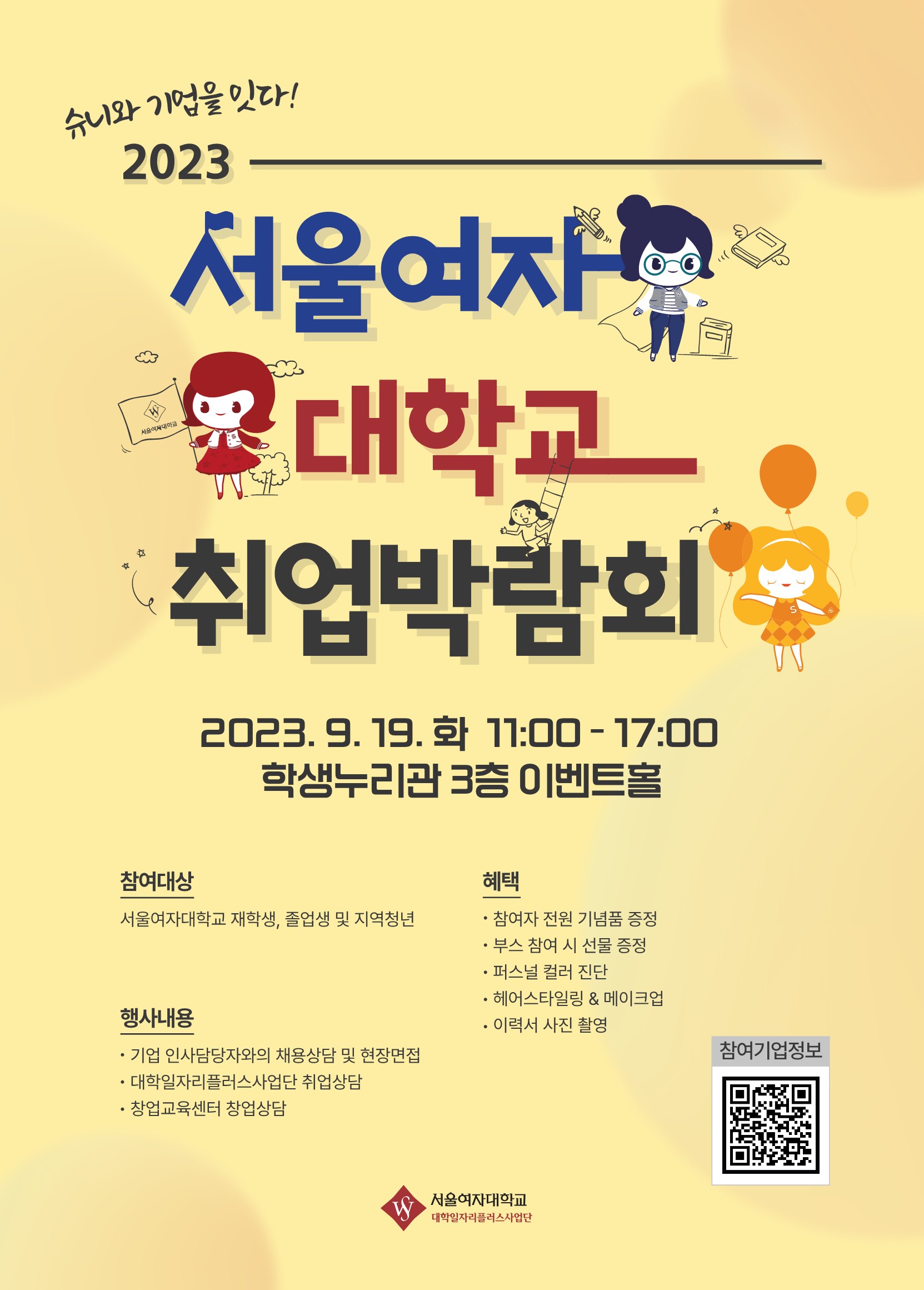 1. 행 사 명: 슈니와 기업을 잇다! 「2023년 서울여자대학교 취업박람회」