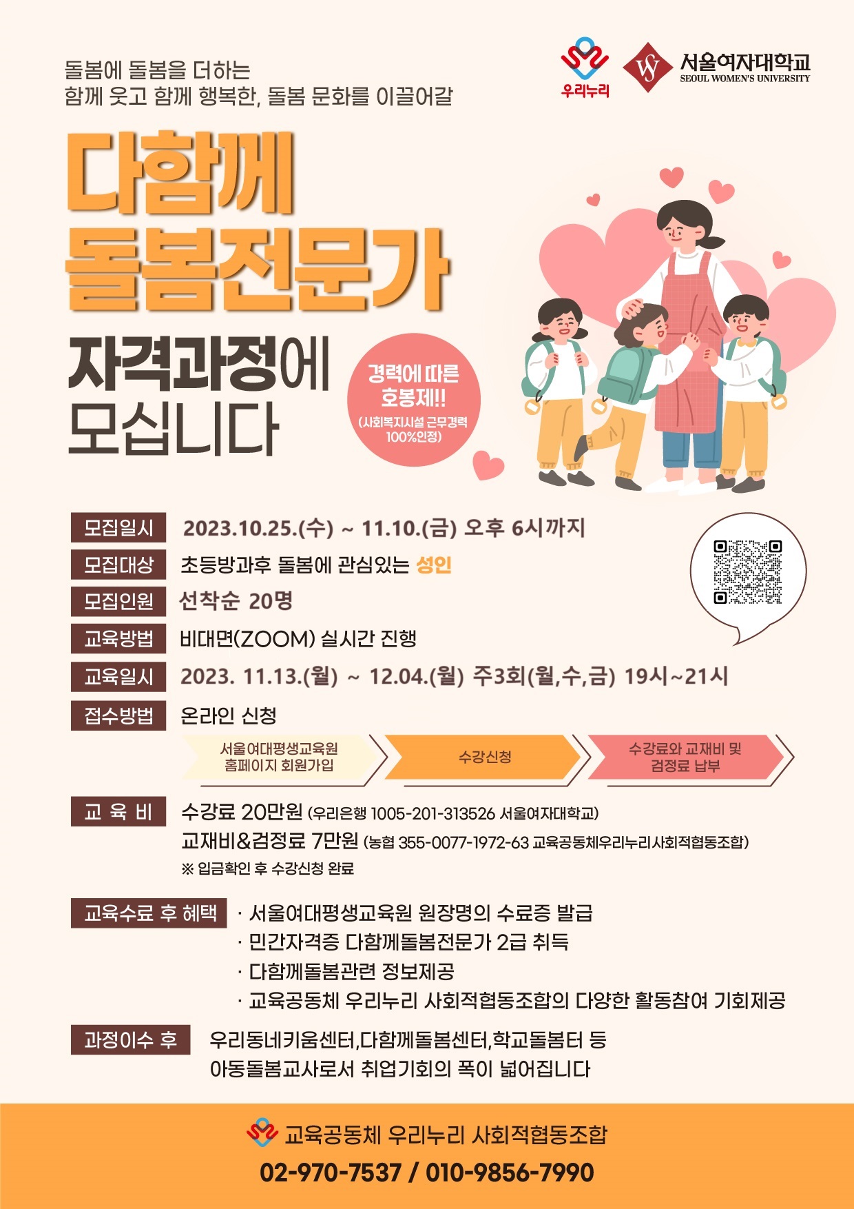 [공릉동] 서울여자대학교 평생교육원 - 다함께 돌봄 전문가 2급(연장 접수 ~11/10)