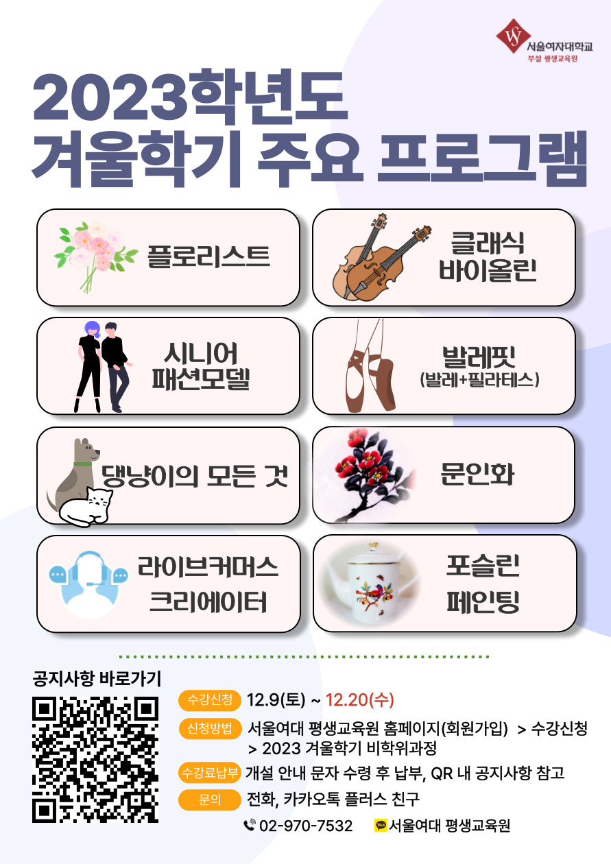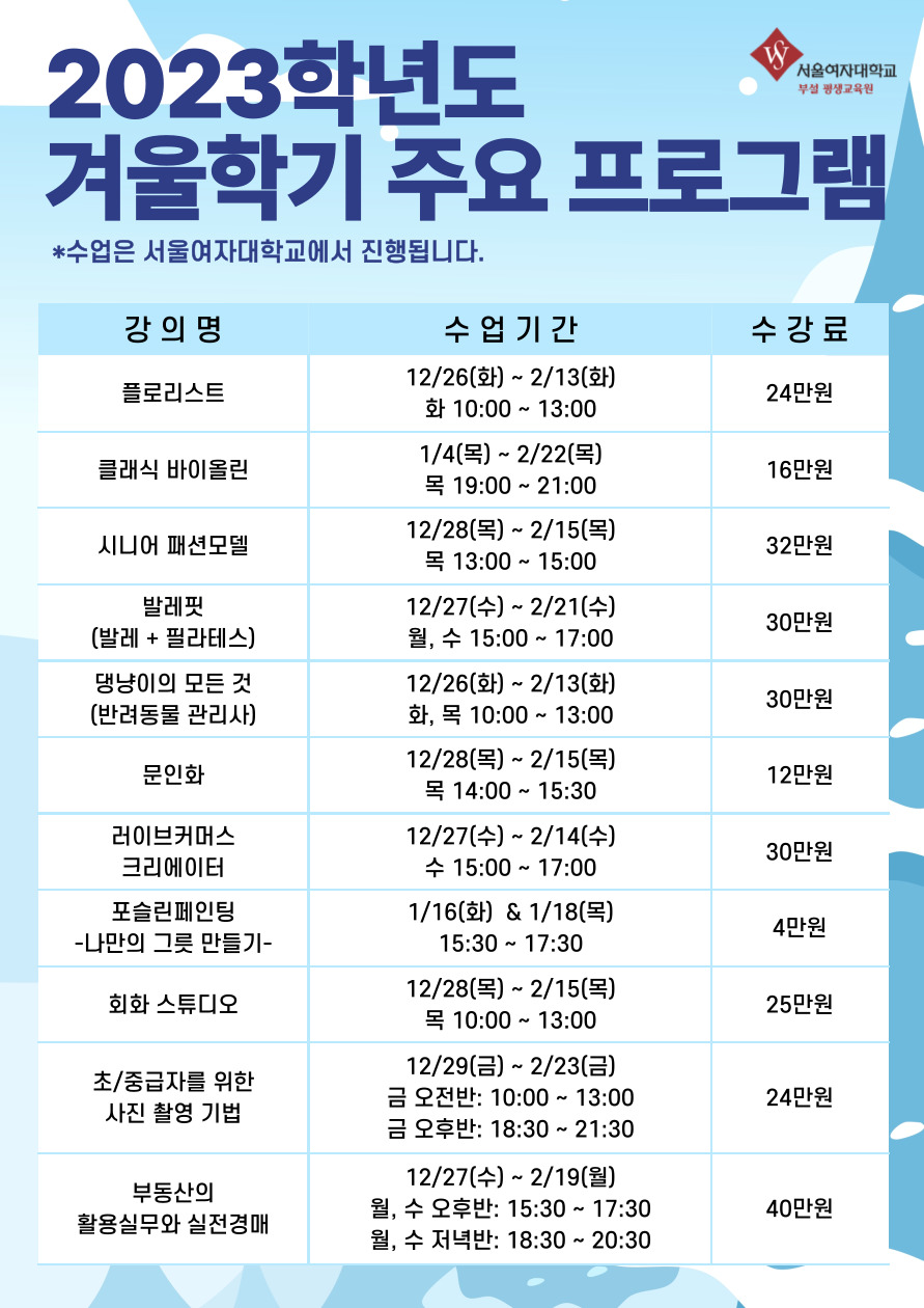 [공릉동] [서울여자대학교 평생교육원] 겨울학기 헤어 강좌 안내 (스타일링, 커트, 퍼머)