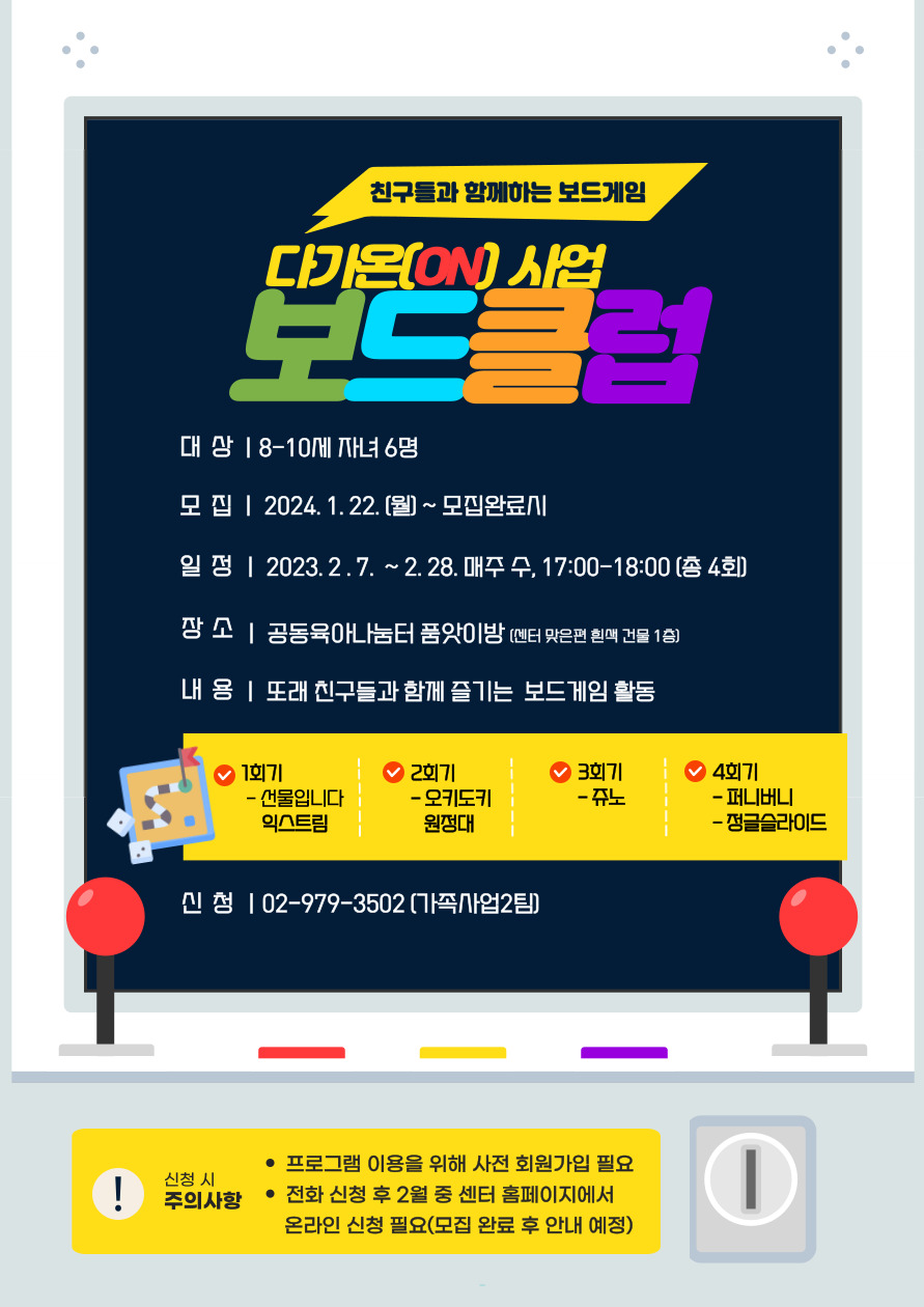 [공릉동] [노원구가족센터] 다가온(ON) 사업 보드클럽 참여자 모집
