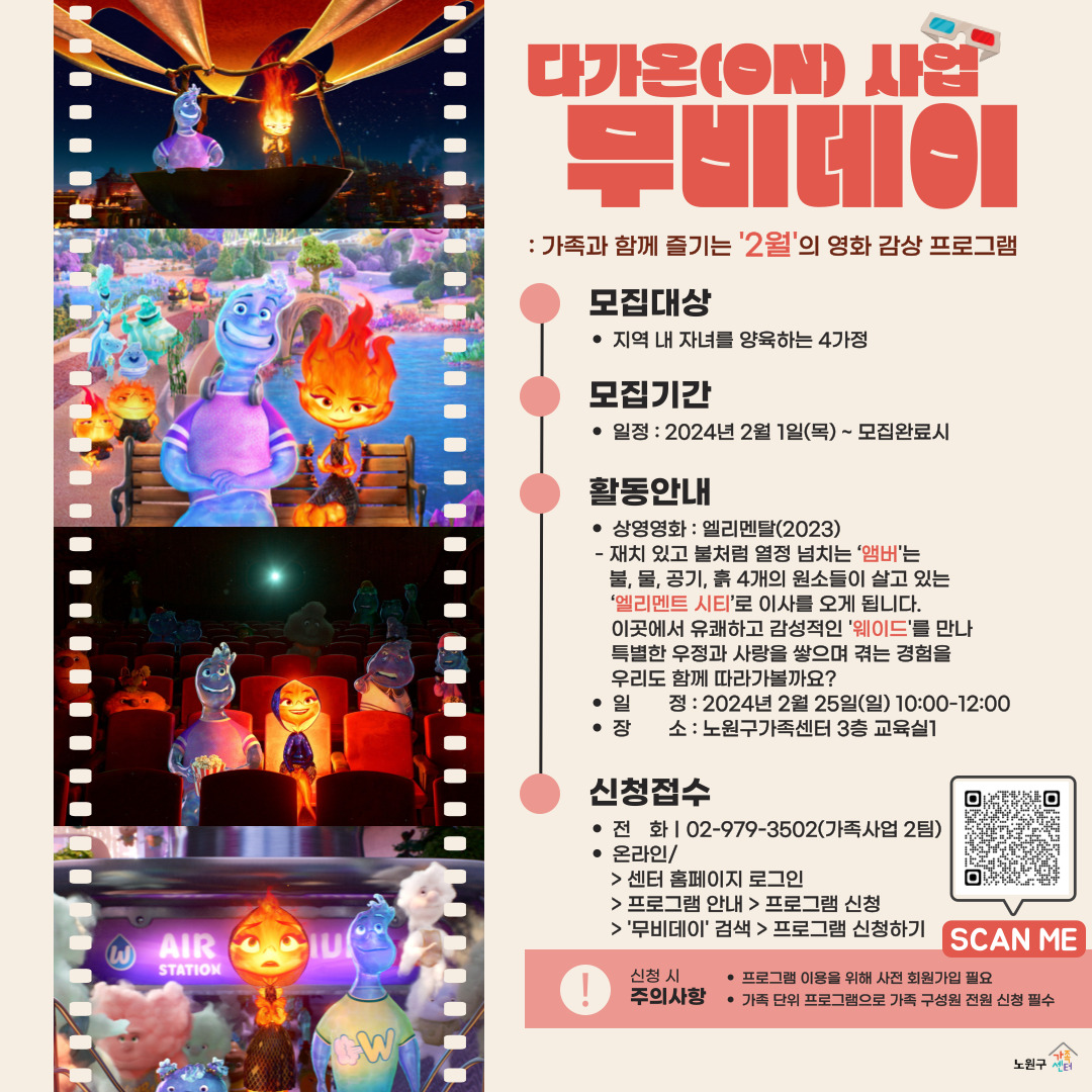 [공릉동] [노원구가족센터] 다가온(ON) 사업 2월 무비데이 참여자 모집