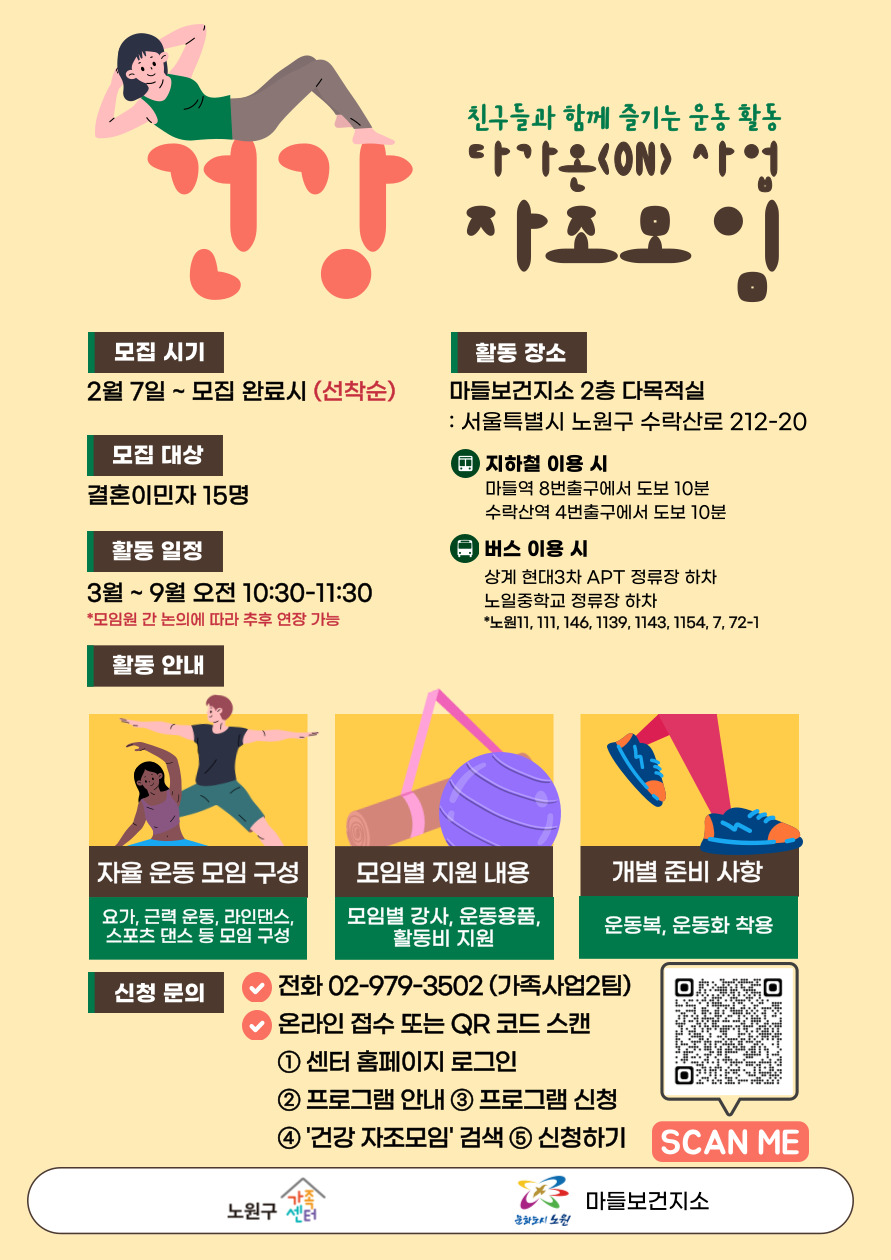[공릉동] [노원구가족센터] 다가온(ON) 사업 건강 자조모임 참여자 모집