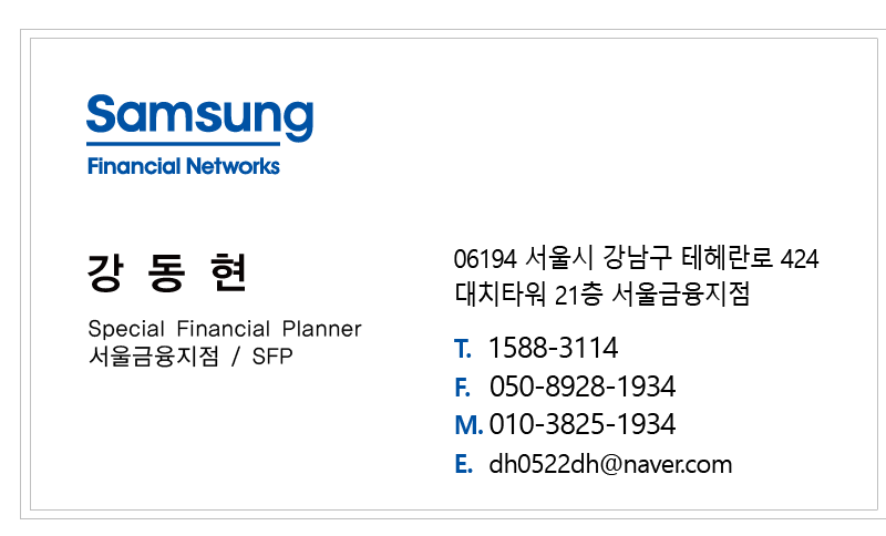 | 자격증 & 이력사항 | 강사소개 현) 삼성그룹 내 신입사원 대상 전문 금융교육강사 현) 개인사업자 및 프리랜서 대상 금융 세미나 강사 현) 사회 초년생 대상 기초금융교육 세미나 강사 현) 직장인 대상 연금제도 세미나 강사 |