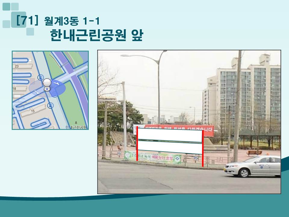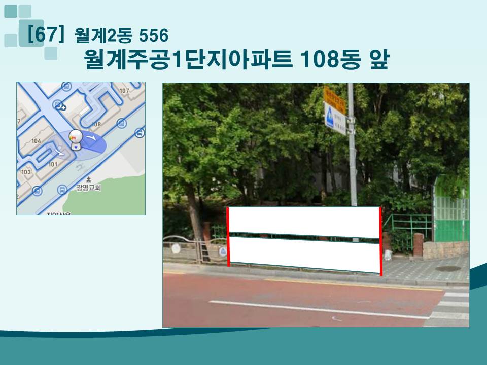 | 월계2동 | 월계-신1-1 | 성원교회 건너편 | 지도 | 현장 | 1단6.0x0.7 | 신청가능 | |